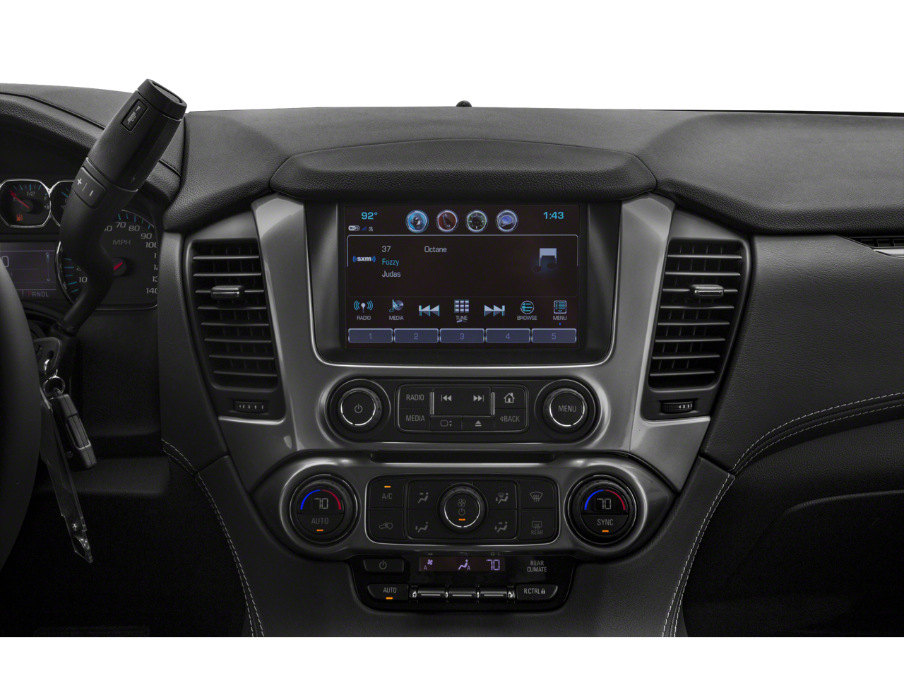 Enhanced Driver Alert Package (Y86) (Forward Collision Alert, IntelliBeam Headlamps, Lane Keep Assist w/Lane Departure Warning, and Low Speed Forward Automatic Braking), License Plate Front Mounting Package, Luxury Package (2nd Row Pwr Release 60/40 Split Folding Bench Seat, 3rd Row 60/40 Power Fold Split-Bench, Extended-Range Remote Keyless Entry, Fog Lamps, Front & Rear Park Assist, Hands Free Power Liftgate, Heated 2nd Row Seats, Heated Leather Wrapped Steering Wheel, Lane Change Alert w/Side Blind Zone Alert, Memory Settings, Passive Entry System, Power Tilt & Telescopic Steering Column w/Memory, Power-Folding Heated Outside Mirrors, Push Button Keyless Start, and Rear Cross-Traffic Alert), Preferred Equipment Group 1LT (1st & 2nd Row Color-Keyed Carpeted Floor Mats, 2nd Row 60/40 Split-Folding Manual Bench, 3rd Row Manual 60/40 Split-Folding Fold Flat Bench, 4-Wheel Antilock Disc Brakes w/Brake Assist, 5 12-Volt Auxiliary Power Outlets, Auto-Dimming Inside Rear-View Mirror, Black Assist Steps, Bose Premium 9-Speaker System, Cargo Net, Color-Keyed Carpeting Floor Covering, Driver Inboard & Front Passenger Airbags, Electronic Cruise Control w/Set & Resume Speed, Floor Console, Front Passenger 6-Way Power Seat Adjuster, Leather-Wrapped Steering Wheel, OnStar Basic Plan For 5 Years, Power Liftgate, Power-Adjustable Accelerator & Brake Pedals, Rear Park Assist w/Audible Warning, Remote Vehicle Start, Roof-Mounted Luggage Rack Side Rails, SiriusXM Satellite Radio, and Universal Home Remote), Premium Smooth Ride Suspension Package, Sun, Entertainment & Destinations Package (Bluetooth® For Phone, HD Radio, Power Sunroof, Radio: Chevrolet MyLink w/Nav/AM/FM Stereo, Rear Seat Blu-Ray/DVD Entertainment System, Single-Slot CD/MP3 Player, and SiriusXM NavTraffic), 4WD, Black Leather, 18 x 8.5 Aluminum Wheels, 3.08 Rear Axle Ratio, 3rd row seats: split-bench, 4-Wheel Disc Brakes, 9 Speakers, ABS brakes, Adjustable pedals, Air Conditioning, Alloy wheels, AM/FM radio: SiriusXM, Apple CarPlay/Android Auto, Auto High-beam Headlights, Auto-dimming Rear-View mirror, Automatic temperature control, Brake assist, Bumpers: body-color, CD player, Compass, Delay-off headlights, Driver door bin, Driver vanity mirror, Dual front impact airbags, Dual front side impact airbags, Electronic Stability Control, Emergency communication system: OnStar Guidance, Exterior Parking Camera Rear, Front anti-roll bar, Front Bucket Seats, Front Center Armrest, Front dual zone A/C, Front Heated Reclining Bucket Seats, Front reading lights, Front wheel independent suspension, Fully automatic headlights, Garage door transmitter, Heated door mirrors, Heated front seats, Illuminated entry, Leather-Appointed Seat Trim, Low tire pressure warning, Memory seat, Occupant sensing airbag, Outside temperature display, Overhead airbag, Overhead console, Panic alarm, Passenger door bin, Passenger vanity mirror, Pedal memory, Power door mirrors, Power driver seat, Power passenger seat, Power steering, Power windows, Premium audio system: Chevrolet MyLink, Radio: Chevrolet MyLink AM/FM Stereo, Rain sensing wipers, Rear air conditioning, Rear anti-roll bar, Rear reading lights, Rear seat center armrest, Rear window defroster, Rear window wiper, Remote keyless entry, Roof rack: rails only, Security system, Speed control, Speed-sensing steering, Split folding rear seat, Spoiler, Steering wheel mounted audio controls, Tachometer, Telescoping steering wheel, Tilt steering wheel, Traction control, Trip computer, Variably intermittent wipers, and Voltmeter.